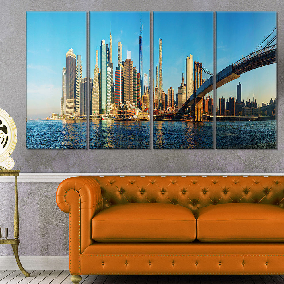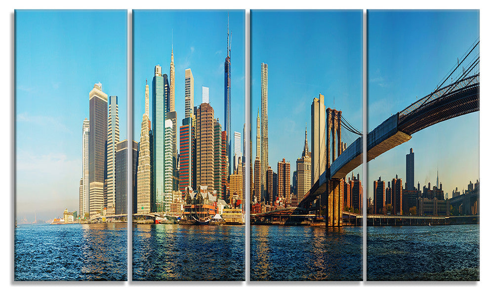 "New York City With Brooklyn Bridge" Canvas Print48"x28", 4-Panels
