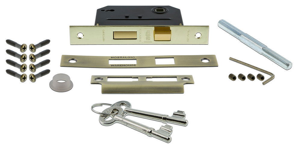 Complete Mortise Lockset, New York Plate with Crystal Knob, Antique Brass