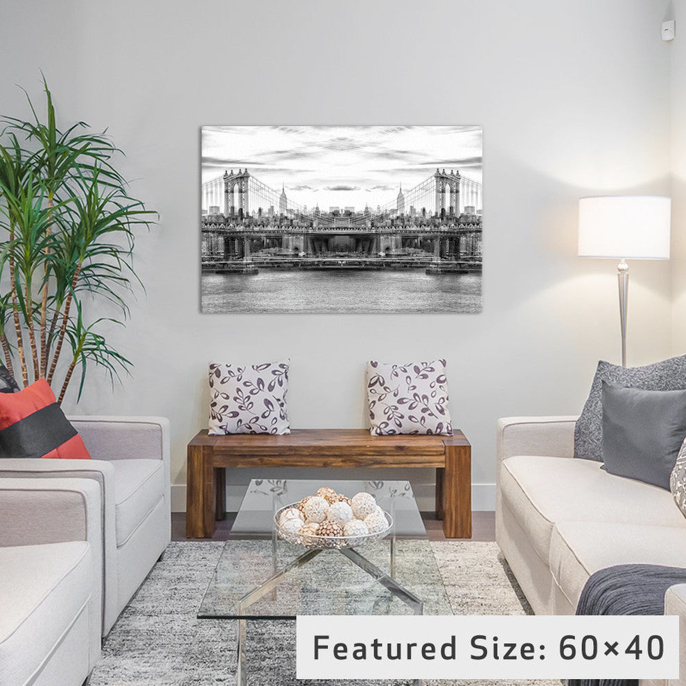 "New York Reflection Manhattan Bridge BW" by Philippe Hugonnard, 26x18x1.5