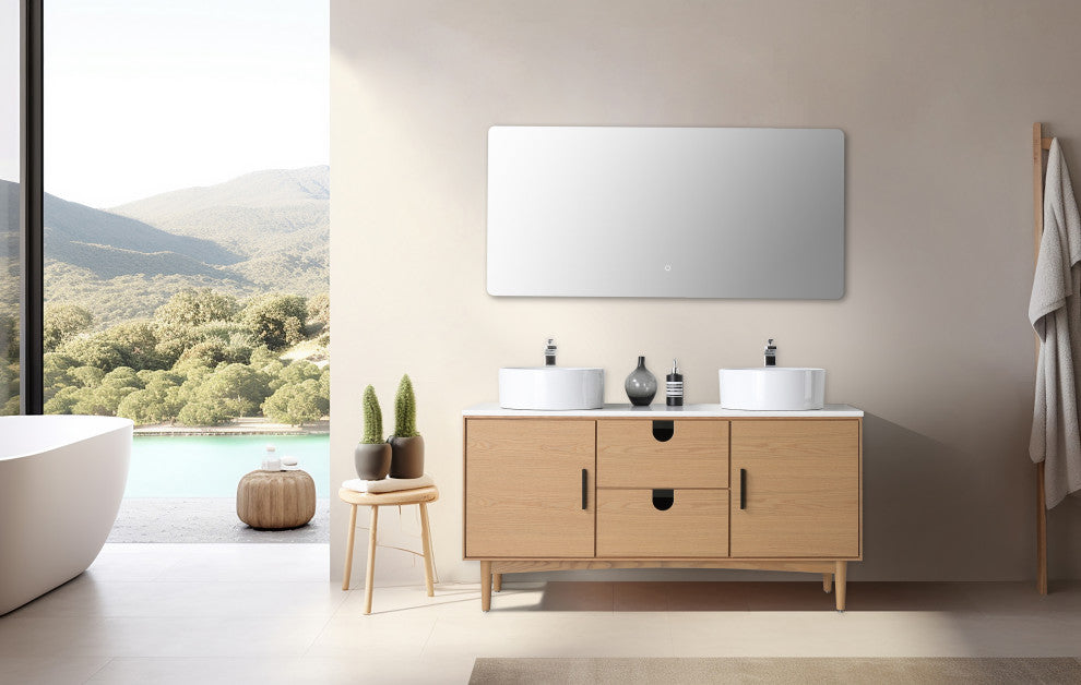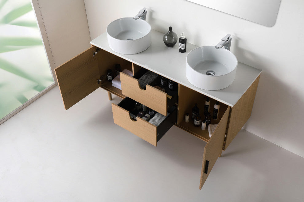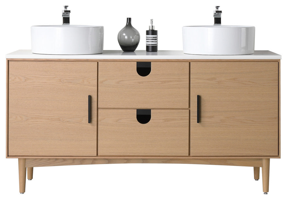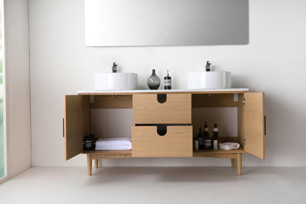 Newton Bath Vanity, Whitewash Oak, 60", Double Sink, Freestanding