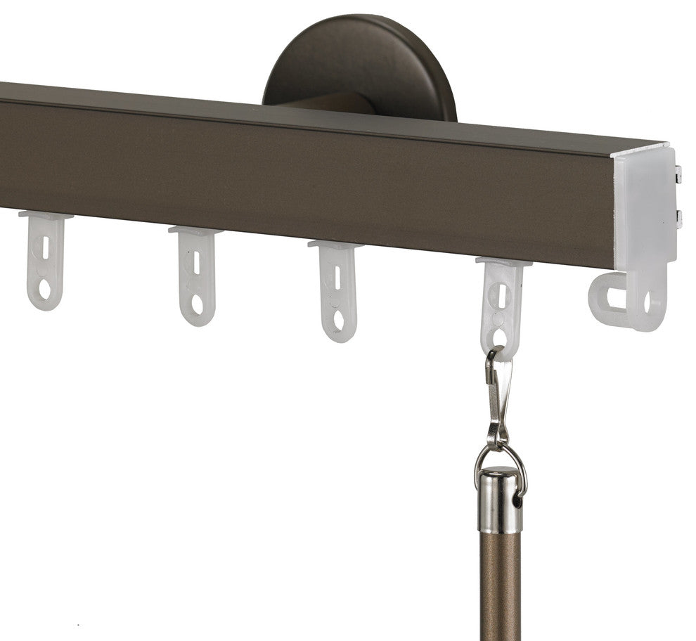 Art Décor has developed Nexgen, the most functional non-telescoping aluminum traverse rod in North America. An innovative supports system enables your drapes to traverse without bracket interference as well as creating an architectural high design appearance. Nexgen is heavy duty and comes in three colors, bronze, silver and white. No longer will you open your drape and be faced with the same old white rod. Now with Nexgen your traverse rod can color co-ordinate with your drapes - Included are the supports (ceiling and 2" wall), aluminum rail, carriers and one baton. - Rails are powder coated with Perma Glide paint for the best traversing in the industry. - Wall supports project 2 1/8 inches from wall to back of rail and ceiling supports are also included. - Aluminum batons will color co-ordinate with color of rod. - Rods over 96 inches are shipped in two equal pieces with a simple effective splicing system.