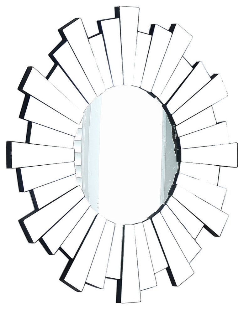 Make this Nexus mirror a reflection of your modern taste. This striking mirror features a new take on the classic sunburst design with various geometric shapes coming together to form its frame. Each piece that forms the frame is also mirrored, so the result is a stunning presentation that is contemporary and bold. Hang this mirror on any focal wall to attract maximum attention, or pair it with the coordinating Nexus console table for added oomph.Overall Product Dimensions: 36" W x 1" D x 36" HMirrored Contemporary DesignGeometric Style