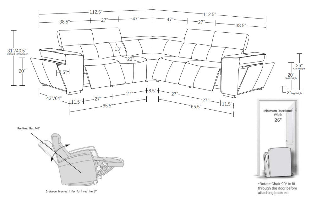 Transform your living space with the luxurious Top Grain Italian Leather L-Shaped Sectional, a perfect combination of comfort, style, and modern functionality. Designed for ultimate relaxation, this sectional features power recliners and power headrests, allowing you to effortlessly adjust to your ideal position at the touch of a button. Integrated lumbar support ensures long-lasting comfort, providing superior support for your lower back during hours of lounging or entertaining.