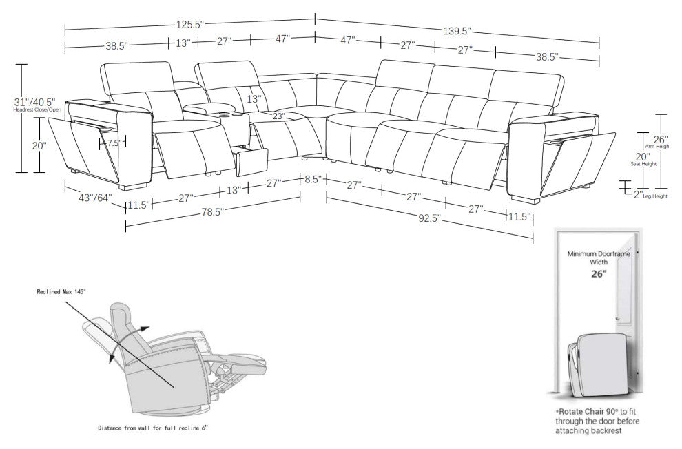 Designed with convenience in mind, the sectional includes built-in consoles featuring cup holders for your beverages and storage drawers to keep small items like remotes, magazines, or other essentials organized. Hidden storage compartments in the arms provide additional space to keep your living area neat and clutter-free.