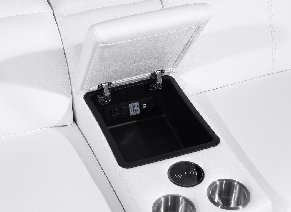 Designed with convenience in mind, the sectional includes built-in consoles featuring cup holders for your beverages and storage drawers to keep small items like remotes, magazines, or other essentials organized. Hidden storage compartments in the arms provide additional space to keep your living area neat and clutter-free.