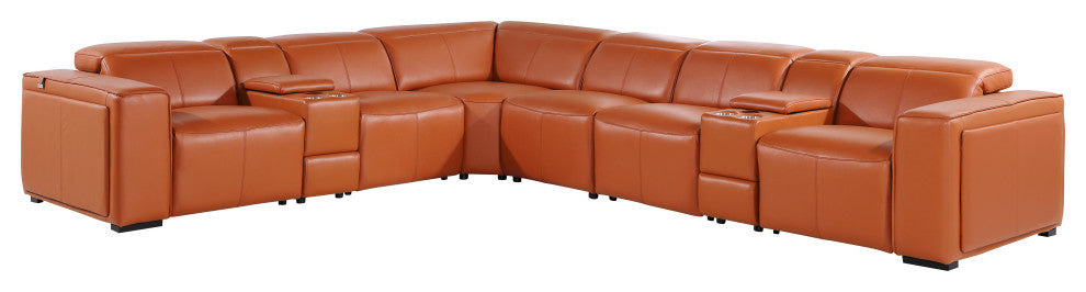 Niccolo Italian Leather 8-Piece L-Shaped Power Reclining Sectional, Camel