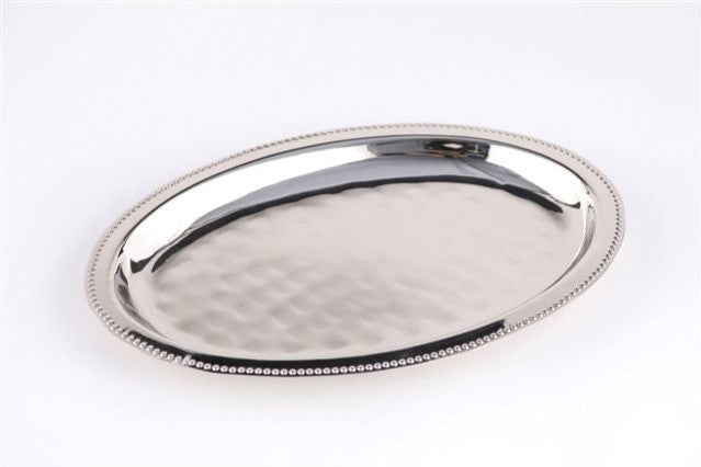 Add function to an ottoman or spruce up a console table with the Nickel Oval Beaded Tray, which features a stylish design that will refresh your space. This piece is made of steel and measures 13 by 2 inches.