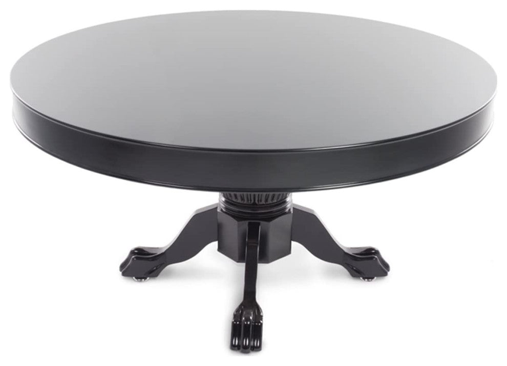 The Nighthawk poker and dining table offers you an elegant place to dine and a classic gaming surface perfect for poker and board games in one table. It features a built in chip track in the race track for each player, seats 8 players and sits on a solid oak pedestal. The red suited speed cloth offers a splash of color to the playing surface. The premium black glass finish is scratch resistant. The Nighthawk features stainless steel cup holders and finishing pins along the edge of the table as well as a premium sponge and black vinyl armrest. Beautiful to look at and fun to play on. Dining Table Dimensions 58" x 58" x 32" tall. Total weight 230lbs. Some assembly required.