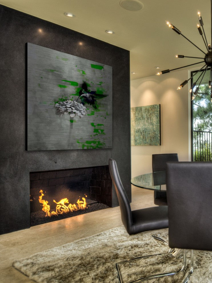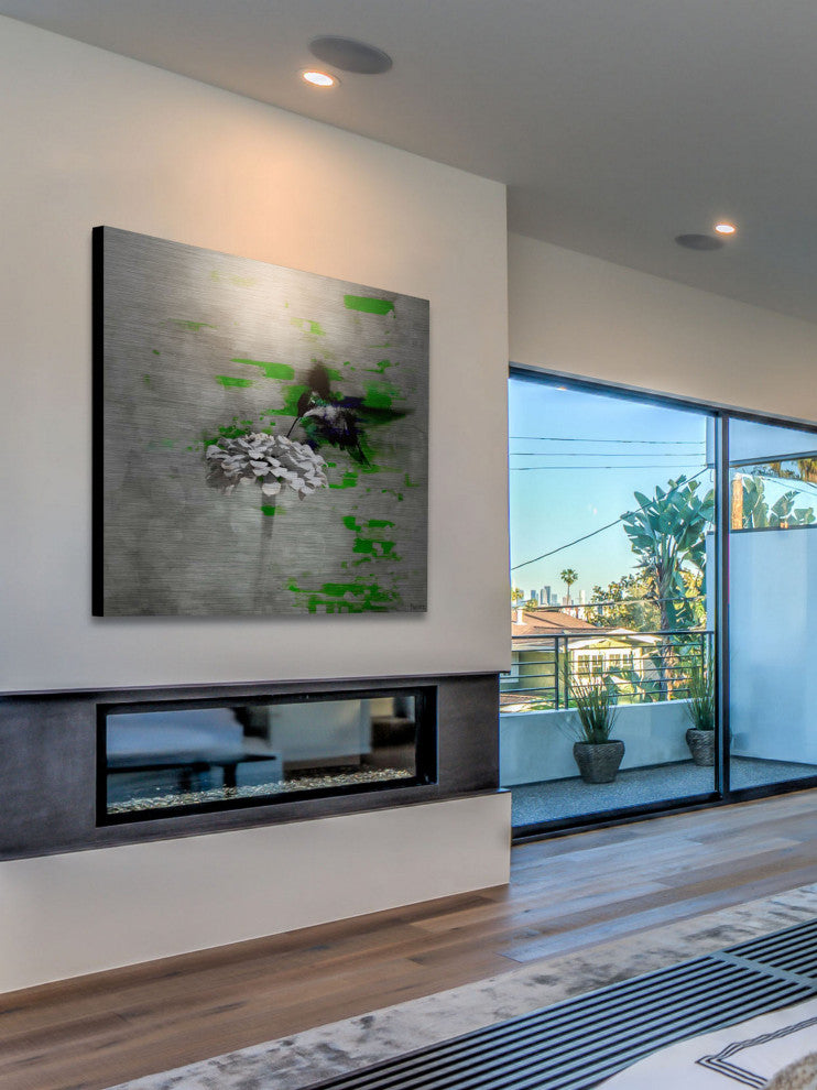 Striking and unique, the "Normanton" Print on Brushed Aluminum by Parvez Taj will bring your walls to life. Printed on aluminum, this 24 inch wide by 24 inch tall contemporary artwork will make a statement in any living room, dining room, or bedroom.- Fine art UV ink print on brushed aluminum by Parvez Taj- The aluminum pops the colors and creates an iridescent shimmer, which gives depth to a room- Arrives ready to hang - Includes a certificate of authenticity- Artist signature on the front