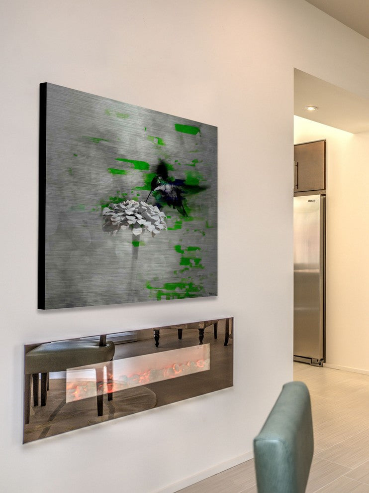 Striking and unique, the "Normanton" Print on Brushed Aluminum by Parvez Taj will bring your walls to life. Printed on aluminum, this 40 inch wide by 40 inch tall contemporary artwork will make a statement in any living room, dining room, or bedroom.- Fine art UV ink print on brushed aluminum by Parvez Taj- The aluminum pops the colors and creates an iridescent shimmer, which gives depth to a room- Arrives ready to hang - Includes a certificate of authenticity- Artist signature on the front