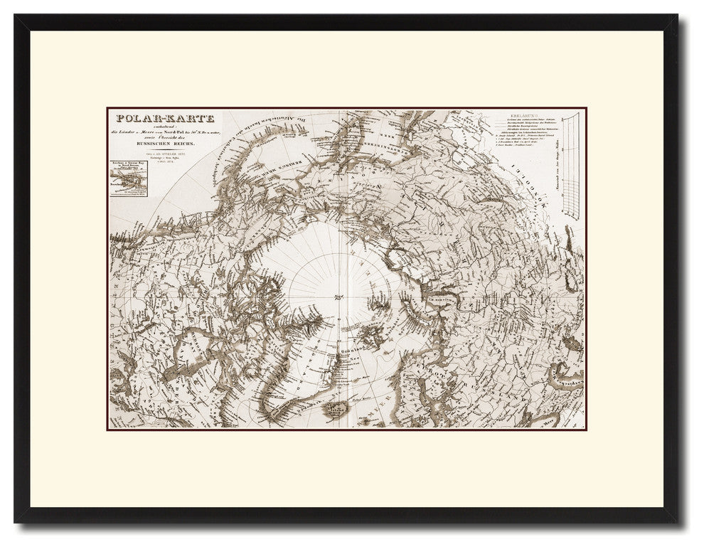 North Pole Stieler Vintage Sepia Map Canvas Print, 16"x21"
