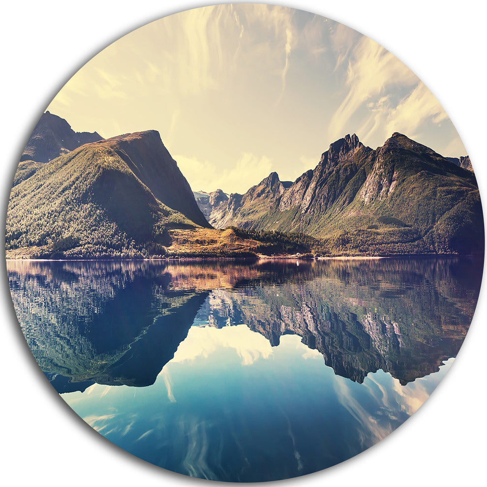 Bring Contemporary Abstraction to your home with this large Circle Metal wall art. This Norway Summer Mountains Metal Artwork makes it the focal point of any room or office.