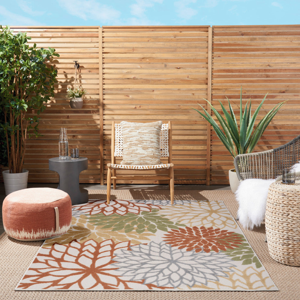 Nourison Aloha 5'3" x 7'5" Ivory Multicolor Outdoor Rug