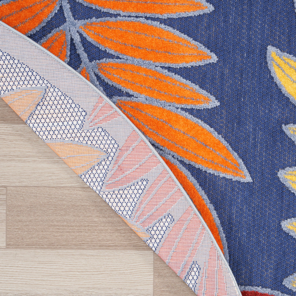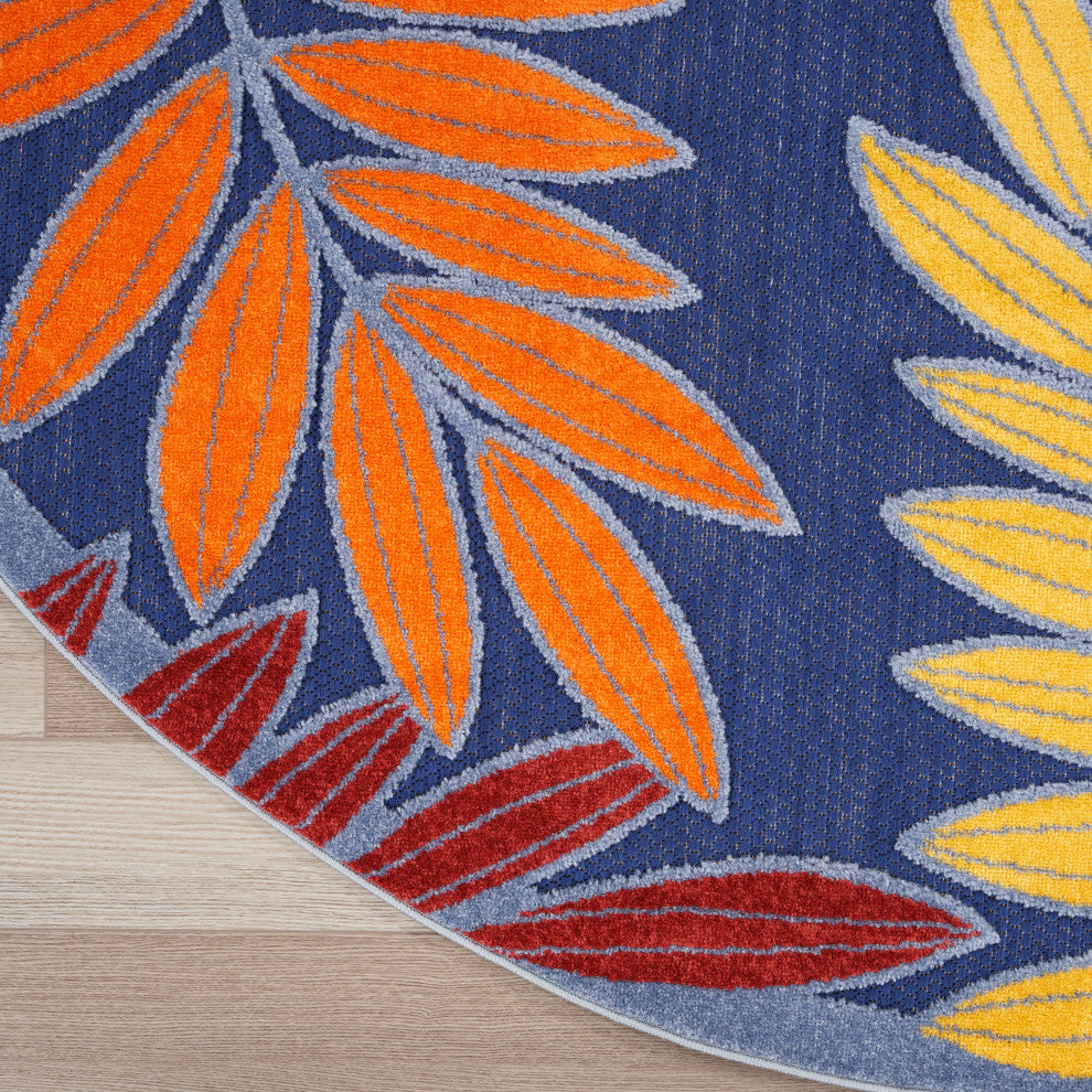 Nourison Aloha 5'3" x Round Navy Multicolor Outdoor Rug