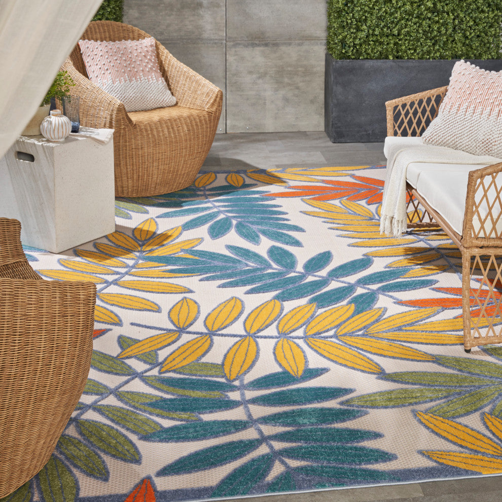 Nourison Aloha 7'10" x 10'6" Ivory/Multi Tropical Rug
