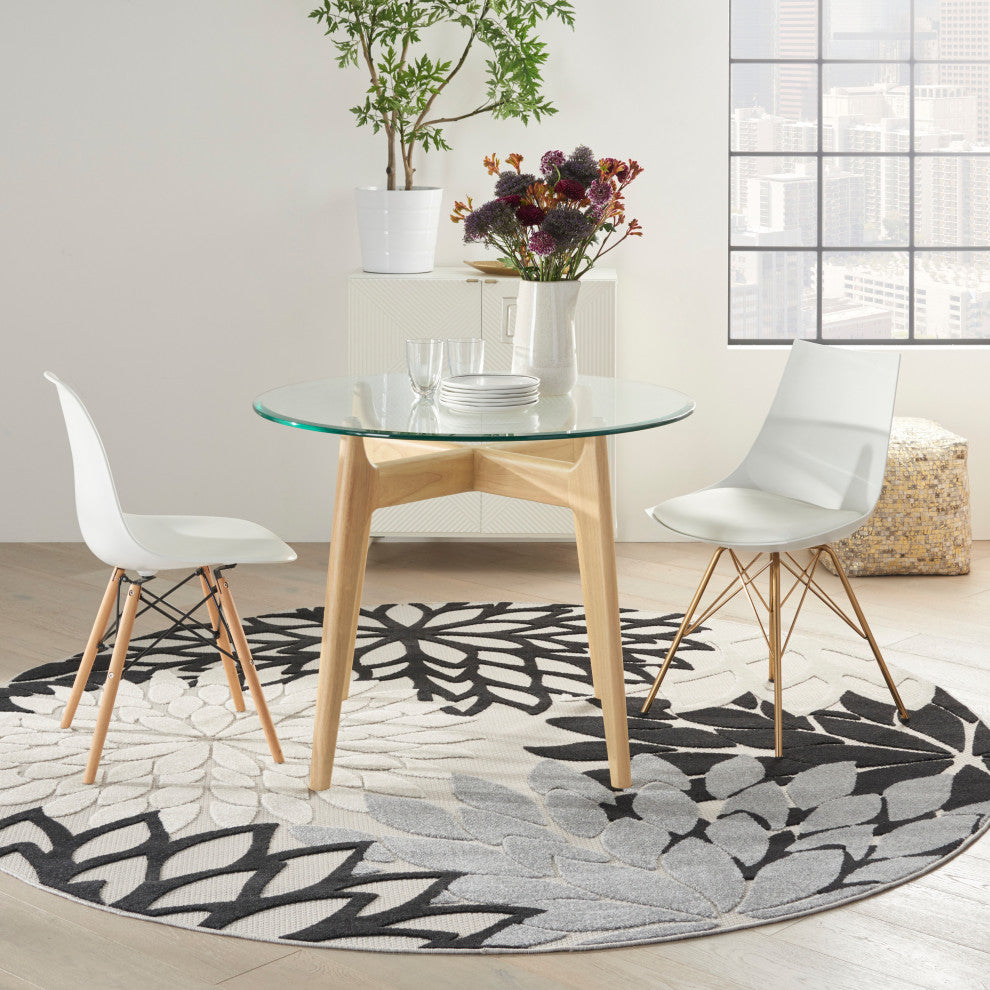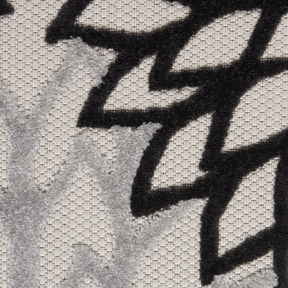 Nourison Aloha 7'10" x Round Black White Tropical Rug