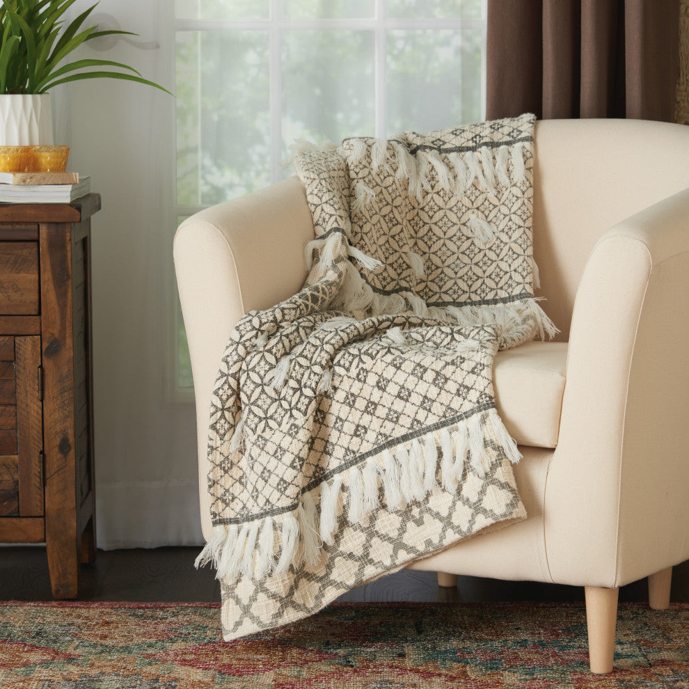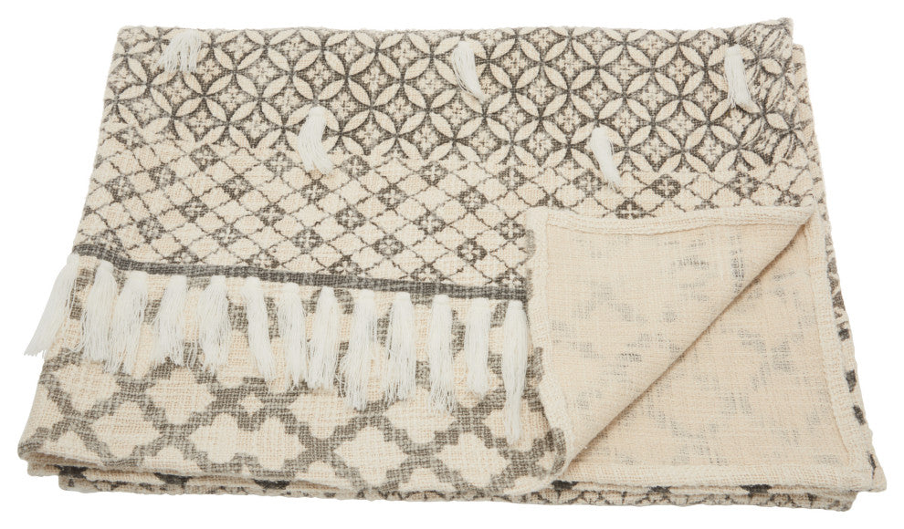 Nourison Home 50"x60" Mina Victory Throw Stonewash Throw Natural Throw Blanket