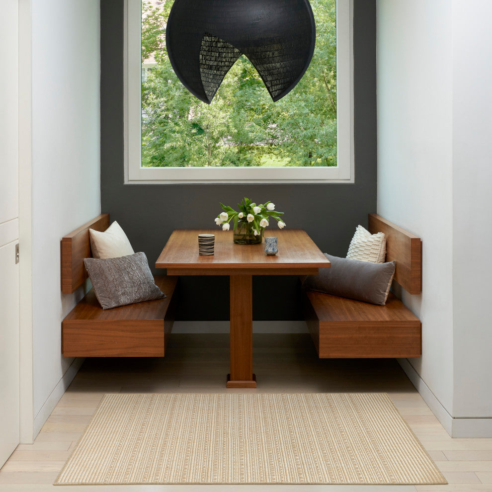 Flatweave construction ideal for high-traffic areas with pets and kids