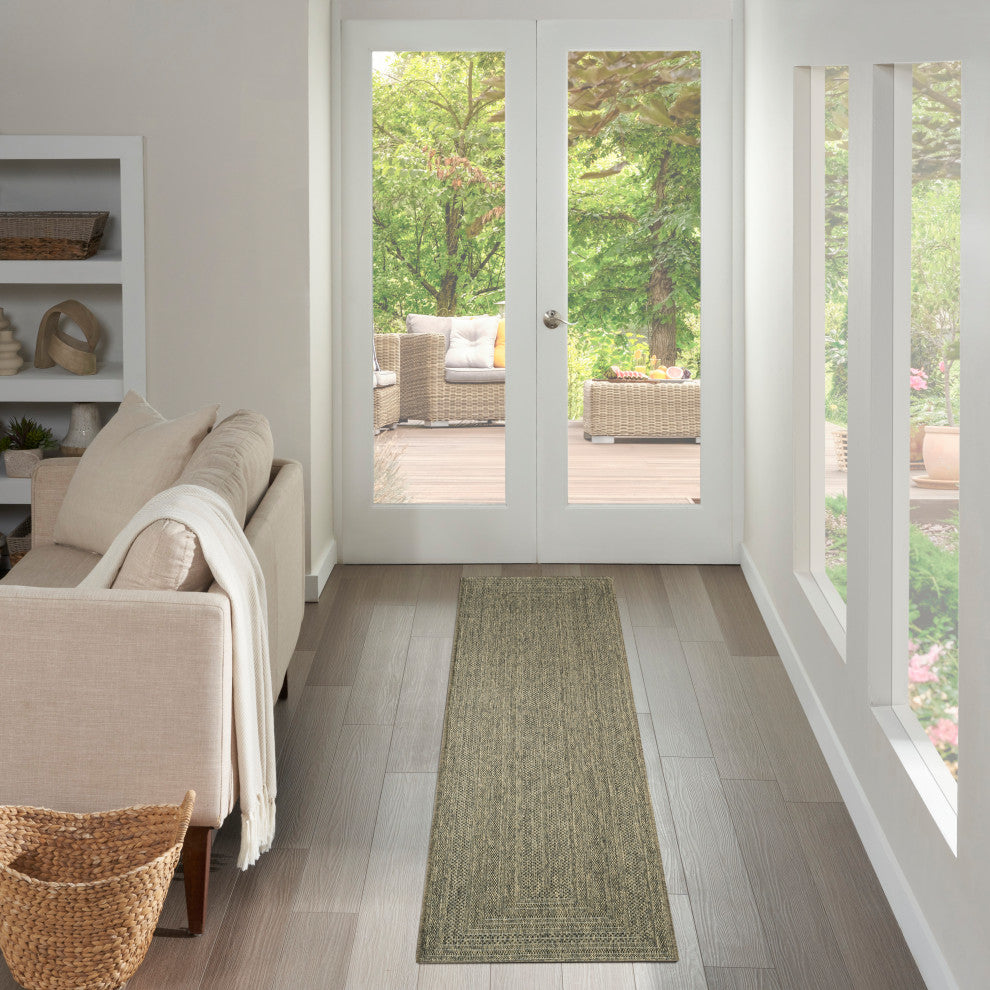 Nourison Tulum 2'2" x 8' Olive Outdoor Rug