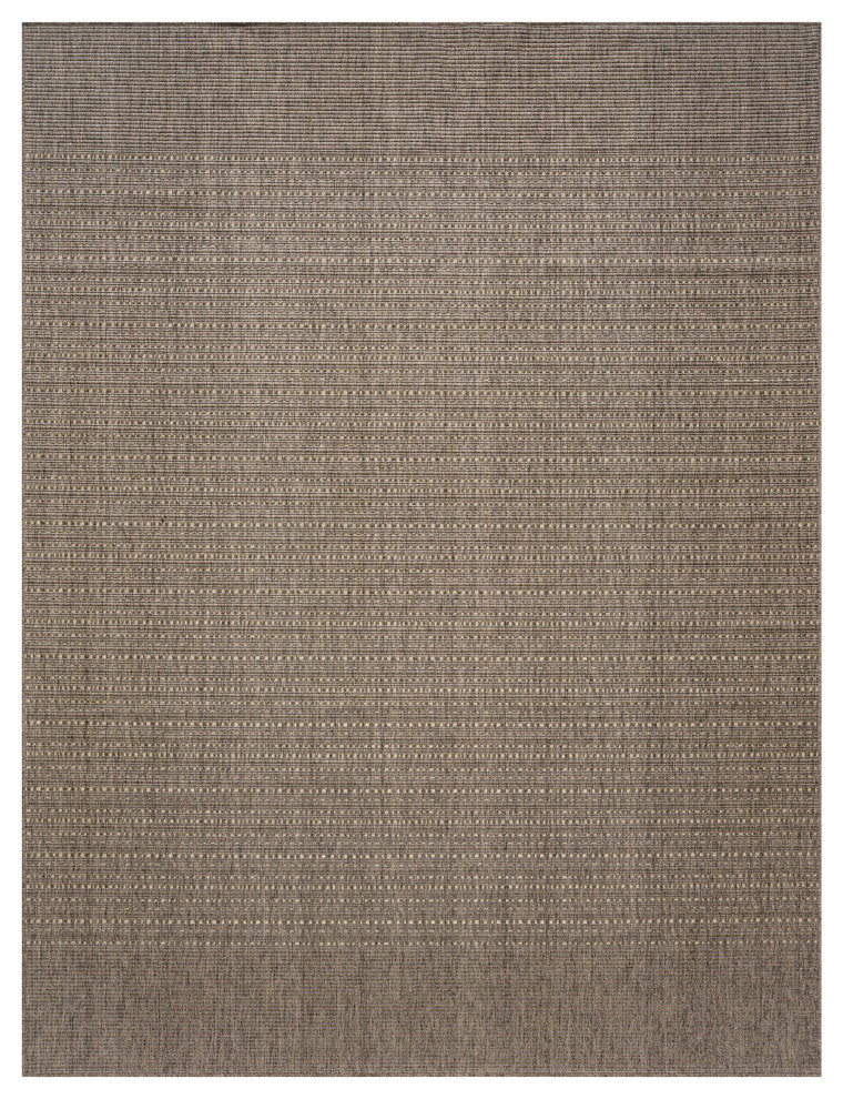This brown outdoor rug from the Tulum collection blends geometric style with subtle sophistication. The simple striped pattern is accented with a series of raised, linear weaving coupled with tonal variations that add a unique pop of pattern to your space. This modern rug is flatwoven with a substantial feel and low-maintenance construction great for high-traffic areas both inside and outside.