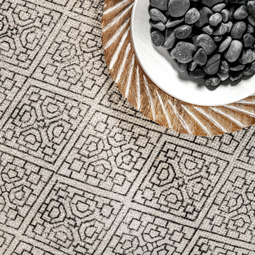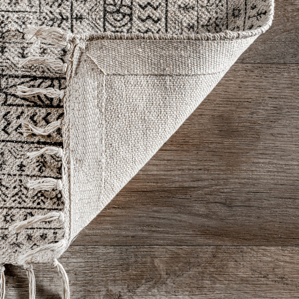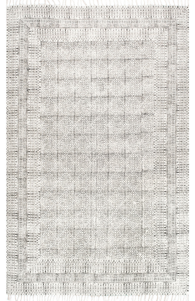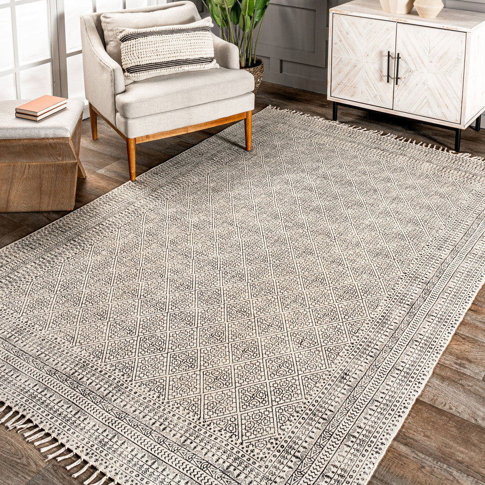 Revel in the eclectic, handmade charm of this trellis area rug. The fringe accents lend a bit of rustic flair to the rug''s flatwoven construction, along with an endearing motif that pairs well with its soft cotton yarn. The rug''s low-pile profile renders it an ideal choice for your moderately trafficked space.90% Cotton, 10% Lurex, made in IndiaRefreshingly lightweight cotton rugs are perfect for dining room, living room, kitchen, entryway, bedrooms, and best when sheltered from direct sunlightSleek and functional .16" pile height allows for convenient placement in entryways and underneath furnitureHandmade rugs should be treated more carefully than machine-made rugs, vacuum regularly (without a beater bar) to reduce potential shedding and spot clean stains by blotting gently with a clean white clothWe recommend using a rug pad to provide extra cushioning and to prevent any possible slipping and sliding on your flooring. Rug pads serve as protective layering piece for your floor and your rug from any wear and tear, extending the life of your rug.