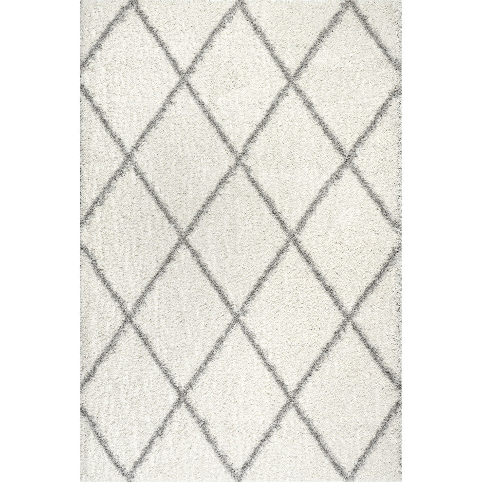 Nuloom Soft and Plush Diamond Trellis Moroccan Lattice Shag Rug, White 5'3"x7'6"
