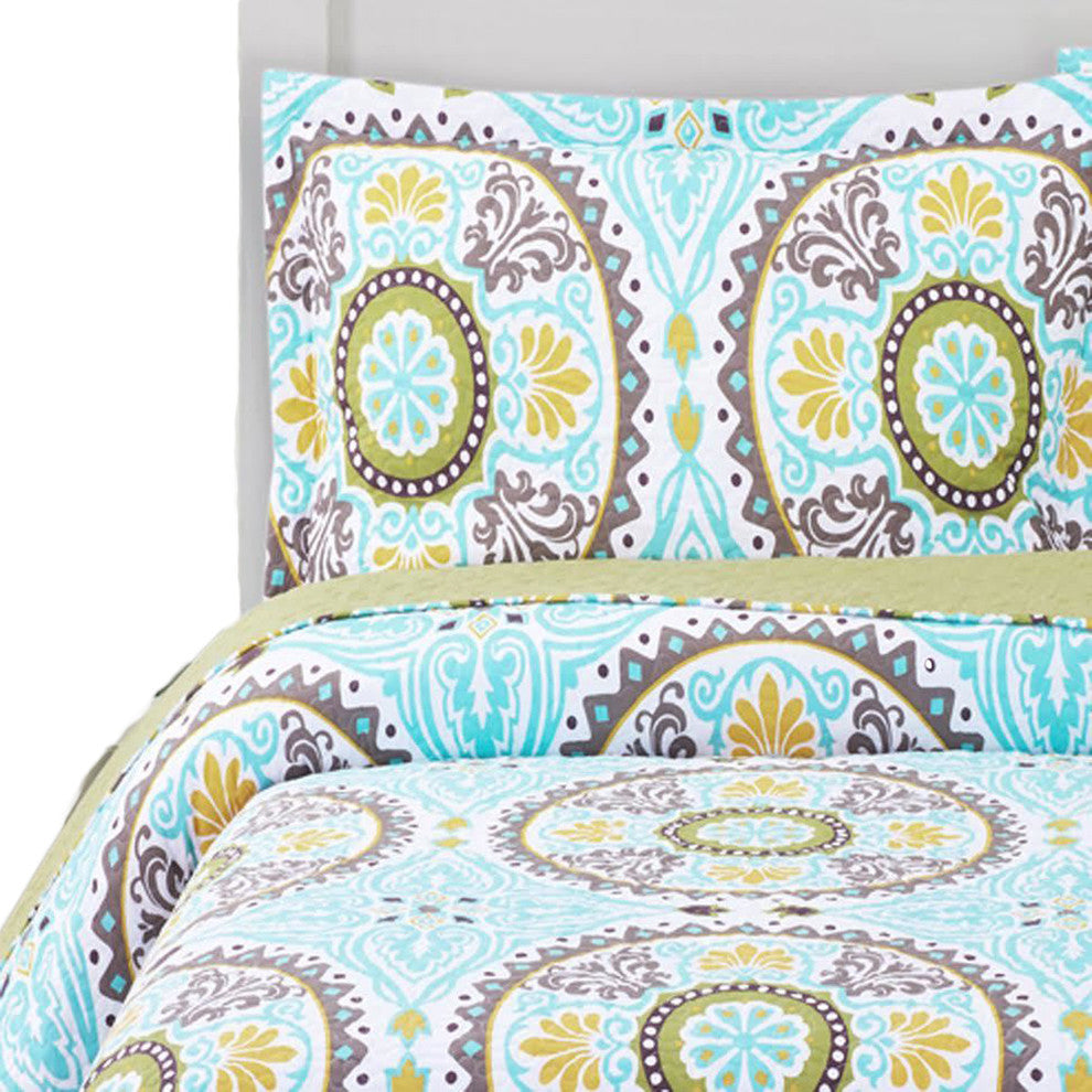 Nyah Oversized Reversible Floral Quilted Coverlet Set, King/Cal King
