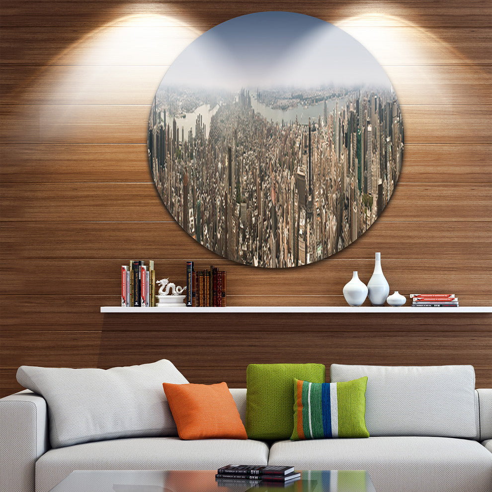 Nyc 360 Degree Panorama, Cityscape Photography Round Metal Artwork, 23"