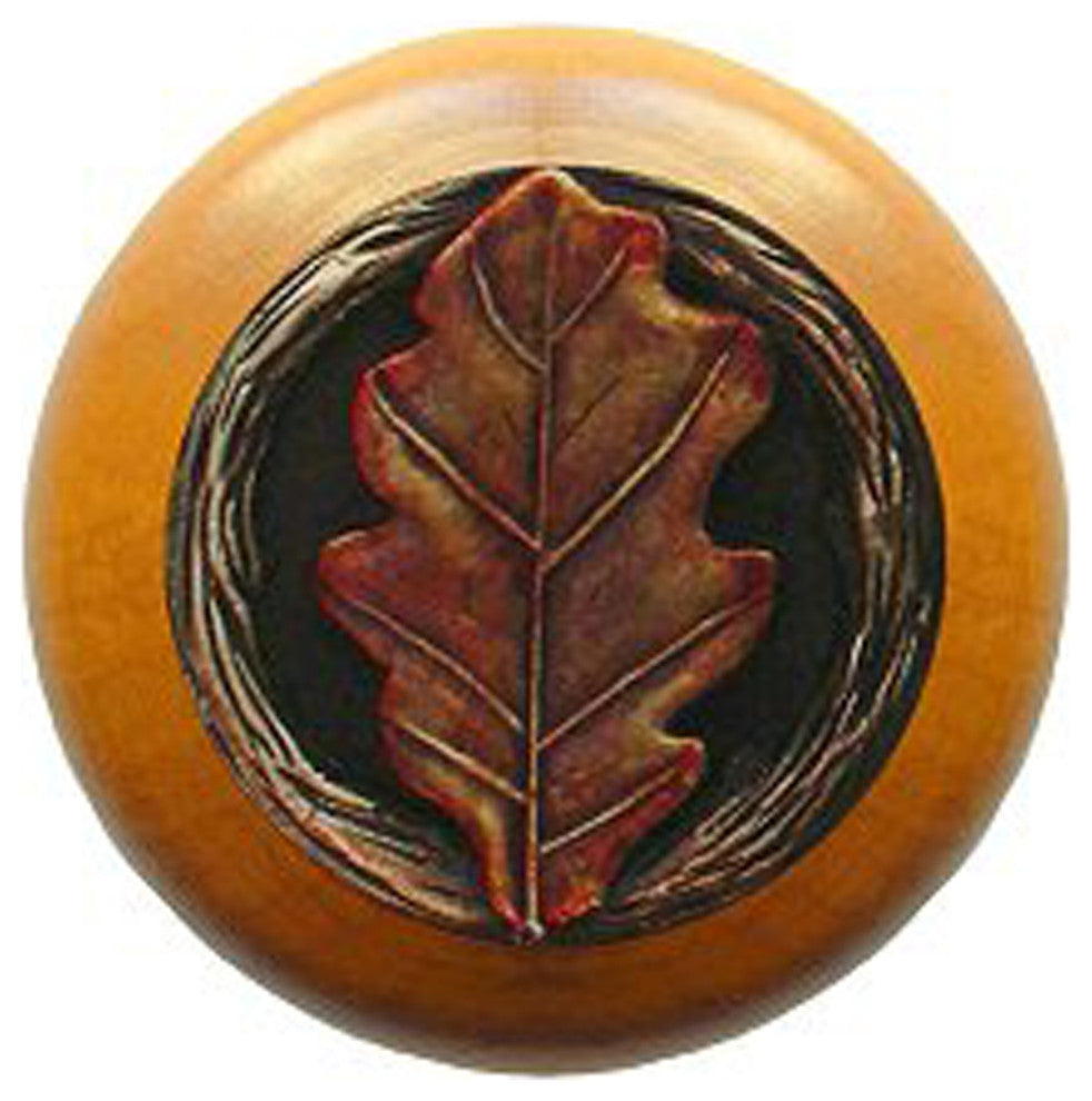 Oak Leaf Wood Knob, Antique Brass, Maple Wood Finish, Brass Hand Tinted