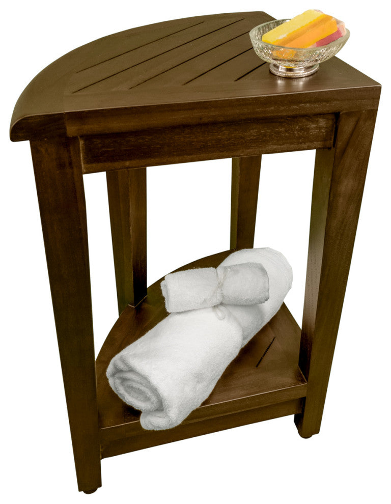Oasis Teak Corner Shower Stool, Table With Shelf, 16"x18"