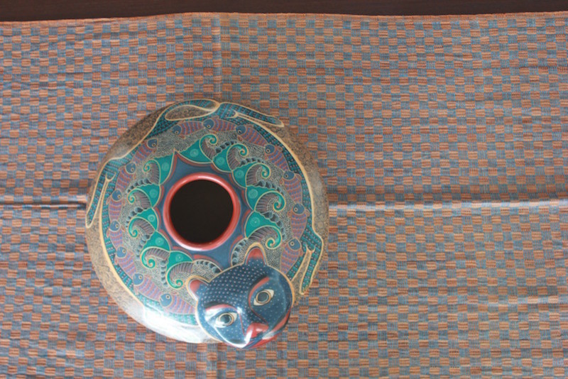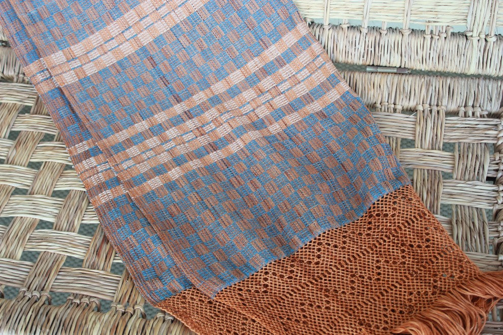 Beautiful Mexican textile, made by weavers from Oaxaca, México. Made and weave on back strap loom, totally handmade using natural pigments to in threads. In this case the weavers used plants and minerals to add that índigo color. You can use this unique rebozo as an original table-runner or a beautiful bed throw
