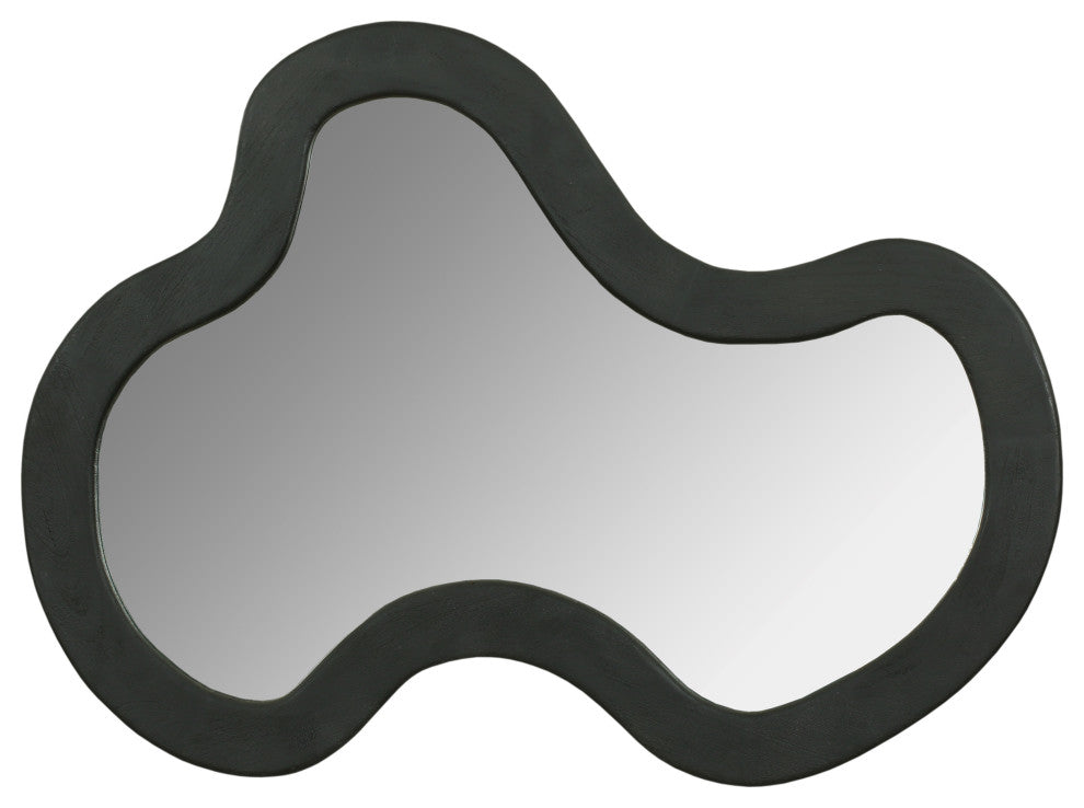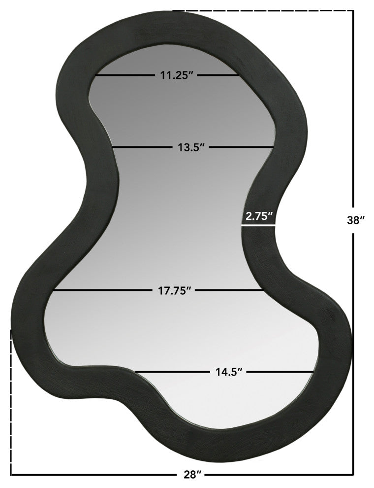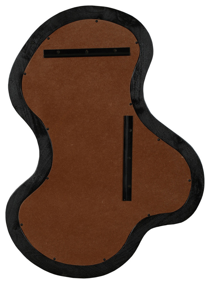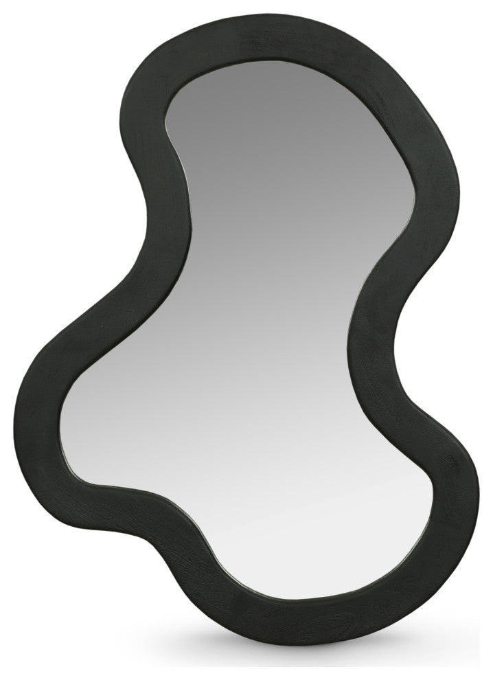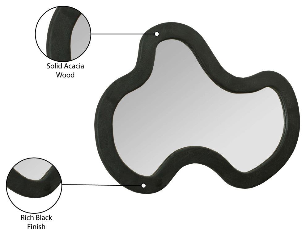 Create an instant focal point on your wall with this Oblique mirror. This oversized mirror has an artful design that adds a touch of modern fun to your room while instantly garnering the attention your wall deserves. Acacia wood forms the frame of this fabulously abstract mirror, providing a bold contrast on your wall that makes it hard to ignore. A rich black finish lets this handsome mirror blend in nicely with other furnishings in your contemporary room.Overall Product Dimensions: 28" W x 2.5" D x 38" HSolid Acacia WoodRich Black FinishCurved Mirror ShapeContemporary DesignNatural Wood Grain Variation - No Item has the same grain finish or wood knots due to natural factors.