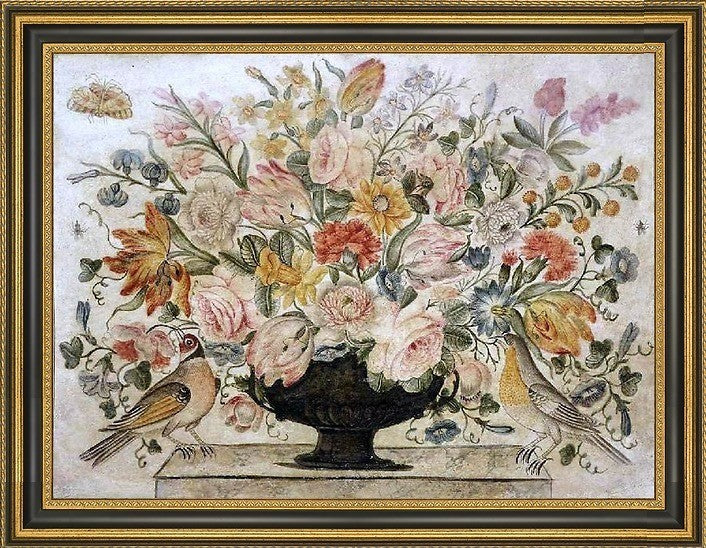 18" x 24" Octavianus Montfort Flowers framed premium canvas print reproduced to meet museum quality standards. Our Museum quality canvas prints are produced using high-precision print technology for a more accurate reproduction printed on high quality canvas with fade-resistant, archival inks. Our progressive business model allows us to offer works of art to you at the best wholesale pricing, significantly less than art gallery prices, affordable to all. This artwork is hand stretched onto wooden stretcher bars, then mounted into our 3 3/4" wide gold finish frame with black panel by one of our expert framers. Our framed canvas print comes with hardware, ready to hang on your wall. We present a comprehensive collection of exceptional canvas art reproductions by Octavianus Montfort.