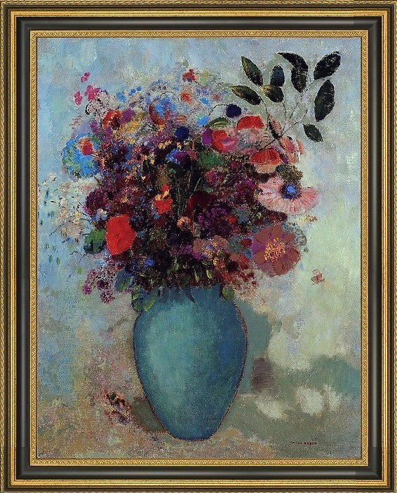 Odilon Redon Flowers in a Turquoise Vase Framed Premium Canvas Print, 18"x24"