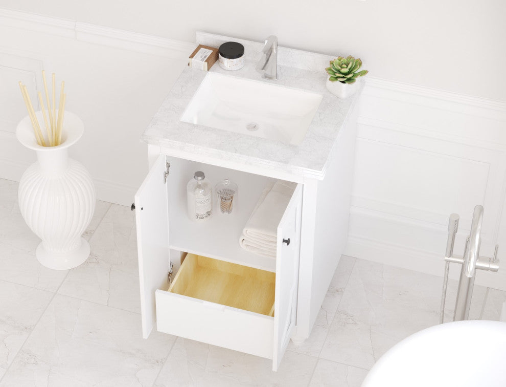 Odyssey, 24" White Cabinet With White Carrara Marble Countertop
