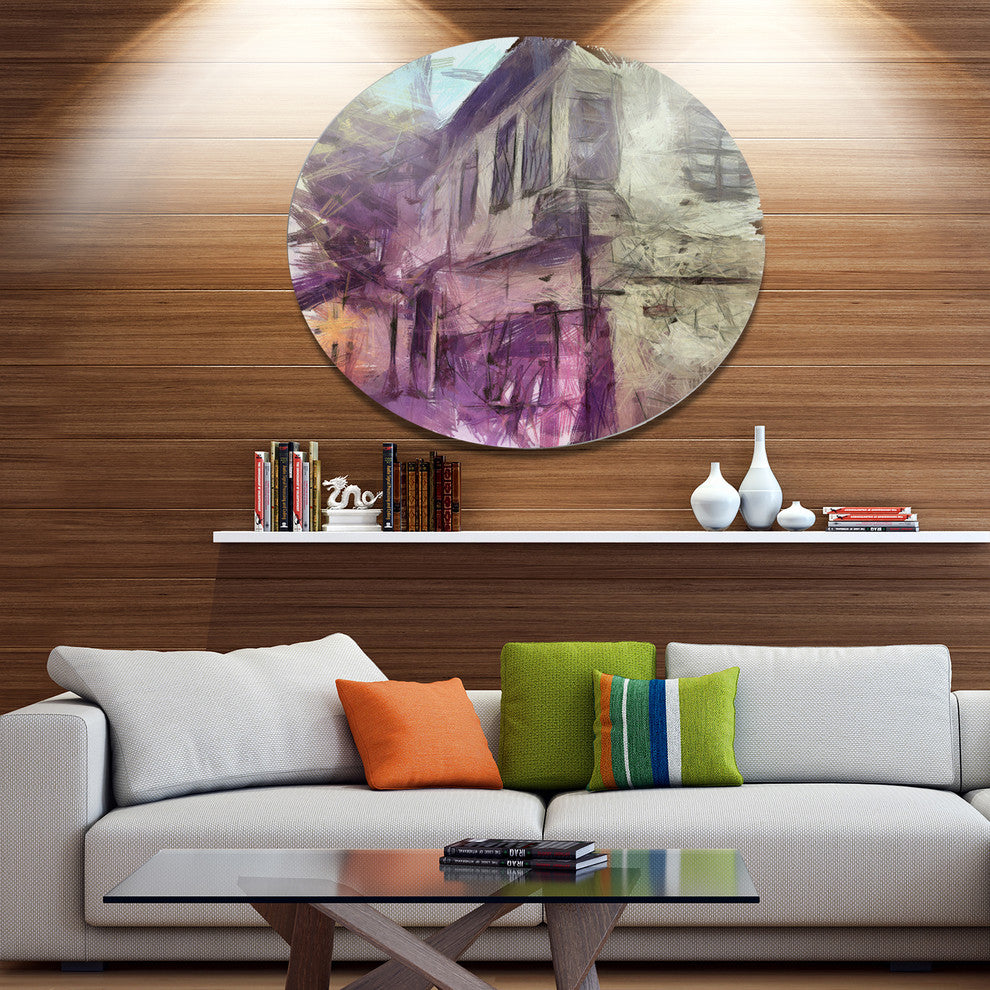 Bring Contemporary Abstraction to your home with this large Circle Metal wall art. This Old City Street Watercolor Sketch Metal Artwork makes it the focal point of any room or office.