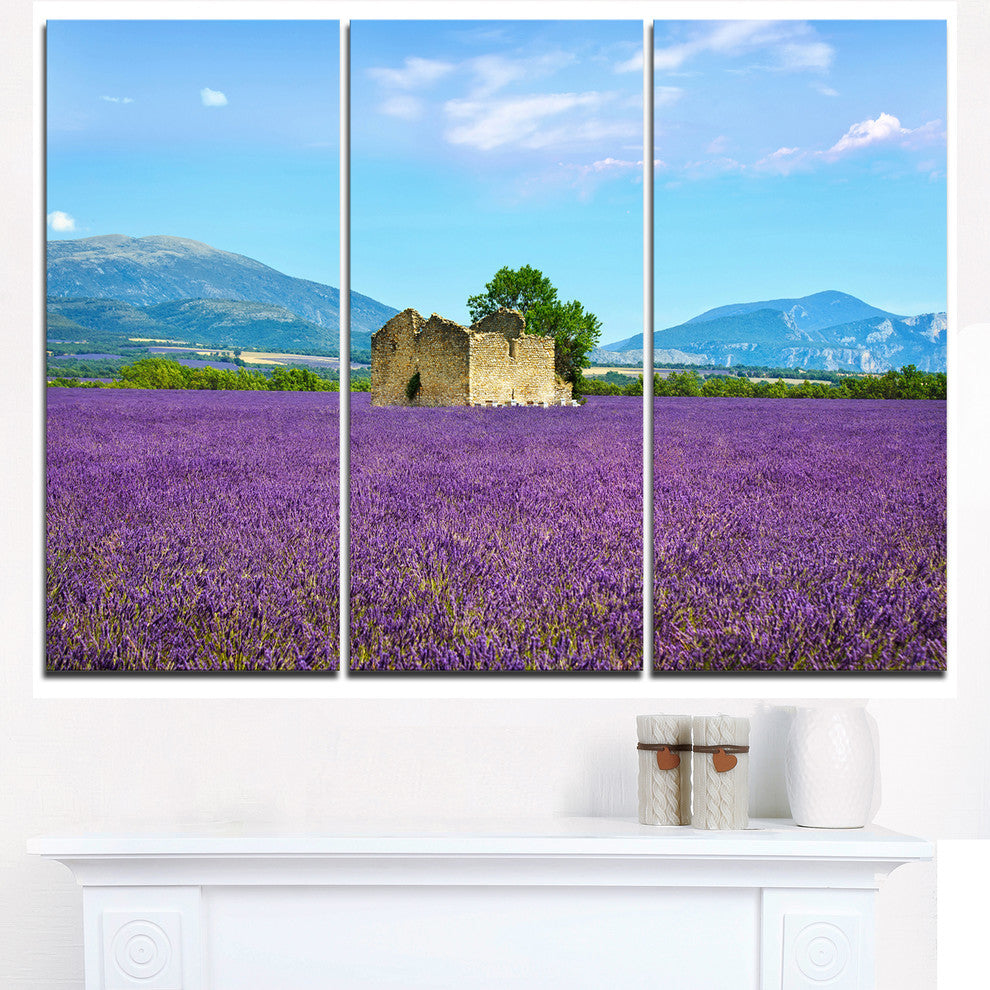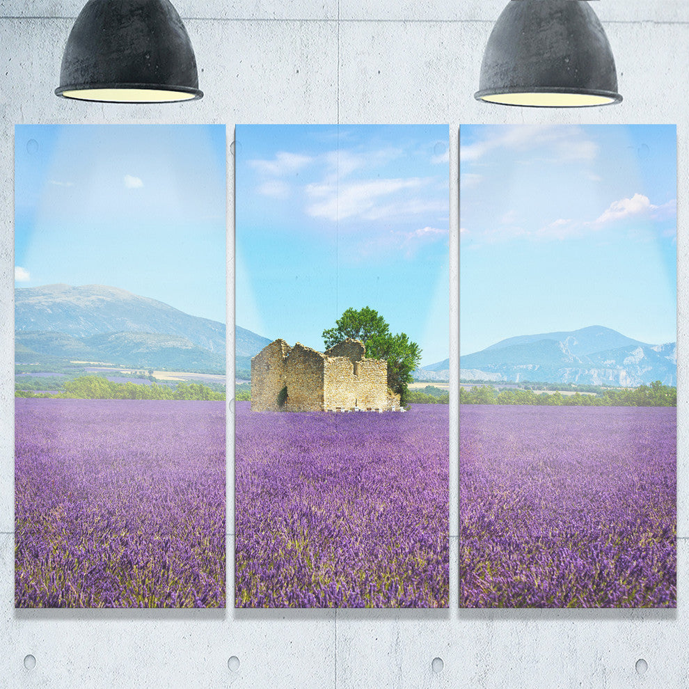 "Old House and Tree in Lavender Field" Metal Wall Art, 3 Panels, 36"x28"