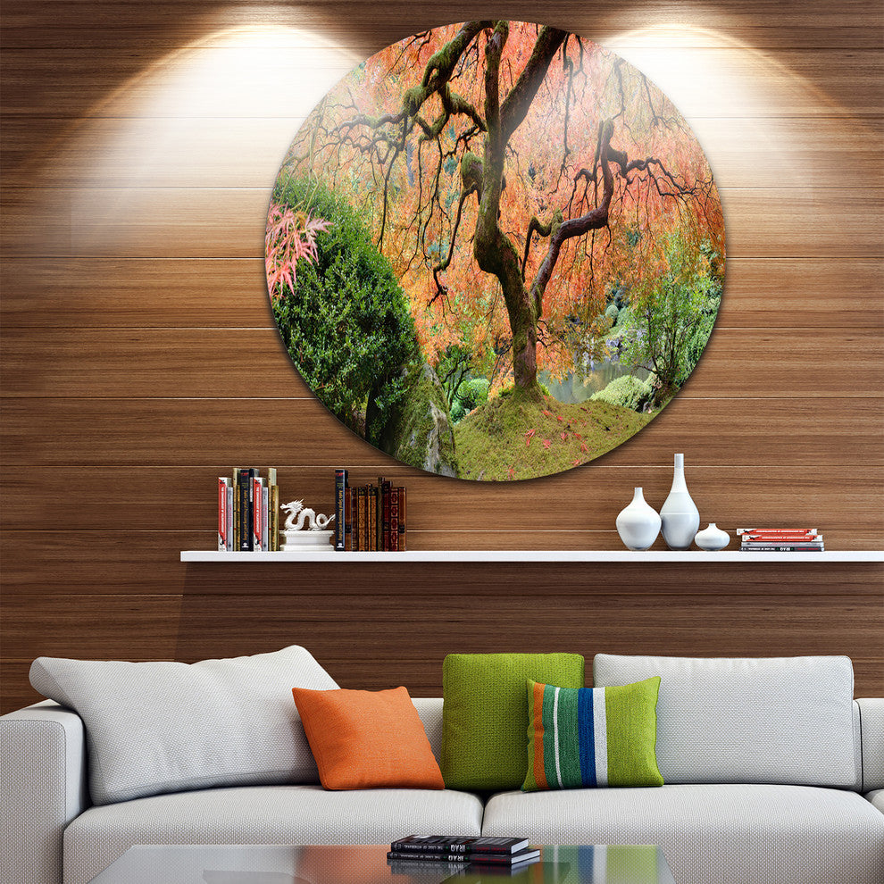 Old Japanese Maple Tree, Landscape Photography Round Metal Artwork, 11"