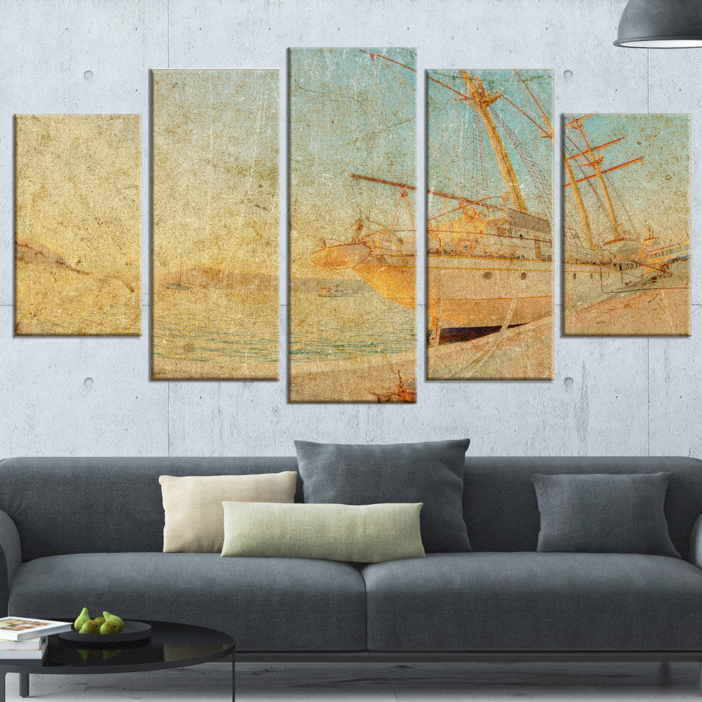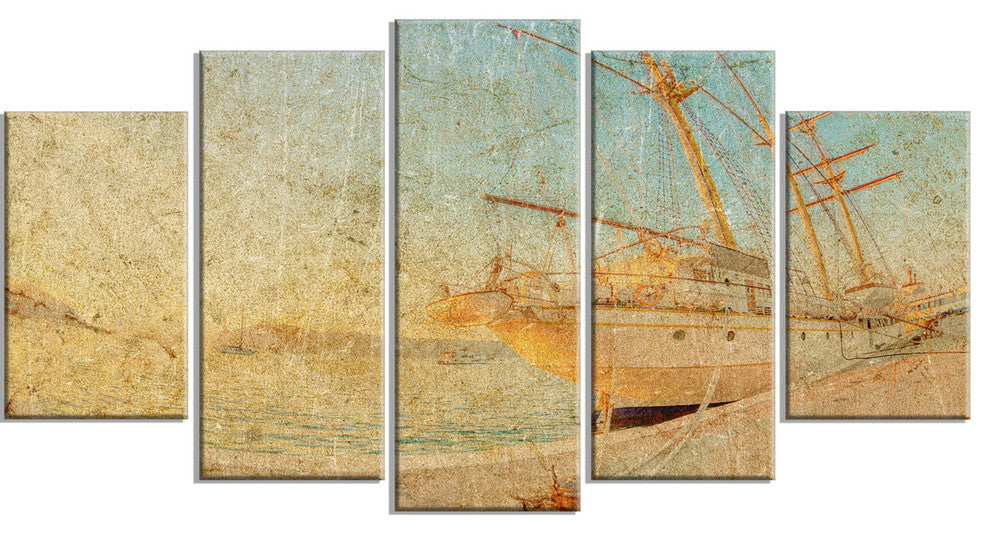 "Old Sailing Ship in Sunlight" Extra Large Seascape Art Canvas, 5Panel, 60"x32"