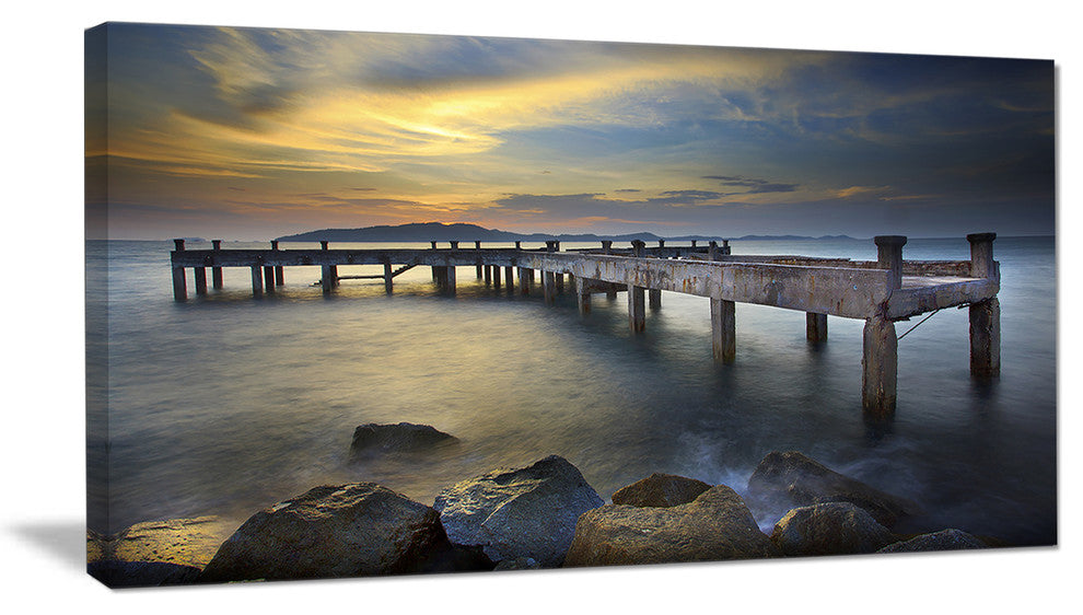 The Old Wood Boat Jetty into Blue Sea canvas art print is sure to make an impression on anyone who sees it. This artwork is gallery wrapped around a 1-inch solid wood frame and arrives carefully packaged and entirely ready to hang on the wall. Design Art only uses the highest resolution and pigments to ensure a crisp colorful print that is never faded or pixelated. This artwork is sure to be a conversation starter in any home or office.
