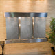 The Olympus Falls water fountain by Adagio Water Features is a beautiful three panel water wall that comes in slate, marble, mirror, or FeatherStone. This wall water fountain is self-contained allowing you to place it anywhere there is a standard 110V outlet without needing a water source. Just pour water into your tray and the pump will cycle it through. Enjoy the calming effects of a water fountain in your home today.75" L x 54" H x 6" D, easy to hang, complete with colored instructions and hardware for hanging on a sheetrock wall. Hanging Weight 180 lbs.This unit includes: 6 halogen lights Polished river rocks 3 Electric pumps3-way pull chain that allows you to run just lights, just water, or lights and water. Welded plastic liner insures against leaking and unique water distribution unit system will not clog. 110V, 100W; one cord operates entire unit; 90 degree plug can be concealed behind water feature. Durable powder coat finish; Manufactured and assembled in the USA with a 1 year limited warranty. • This light-weight slate veneer known as FeatherStone is natural stone and therefore may differ in color and texture from the photos shown.