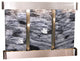 The Olympus Falls water fountain by Adagio Water Features is a beautiful three panel water wall that comes in slate, marble, mirror, or FeatherStone. This wall water fountain is self-contained allowing you to place it anywhere there is a standard 110V outlet without needing a water source. Just pour water into your tray and the pump will cycle it through. Enjoy the calming effects of a water fountain in your home today.75" L x 54" H x 6" D, easy to hang, complete with colored instructions and hardware for hanging on a sheetrock wall. Hanging Weight 465 lbs.This unit includes: 6 halogen lights Polished river rocks 3 Electric pumps3-way pull chain that allows you to run just lights, just water, or lights and water. Welded plastic liner insures against leaking and unique water distribution unit system will not clog. 110V, 100W; one cord operates entire unit; 90 degree plug can be concealed behind water feature. Durable powder coat finish; Manufactured and assembled in the USA with a 1 year limited warranty. • All marbles are natural and may differ in color and texture from the picture shown due to their natural uniqueness.
