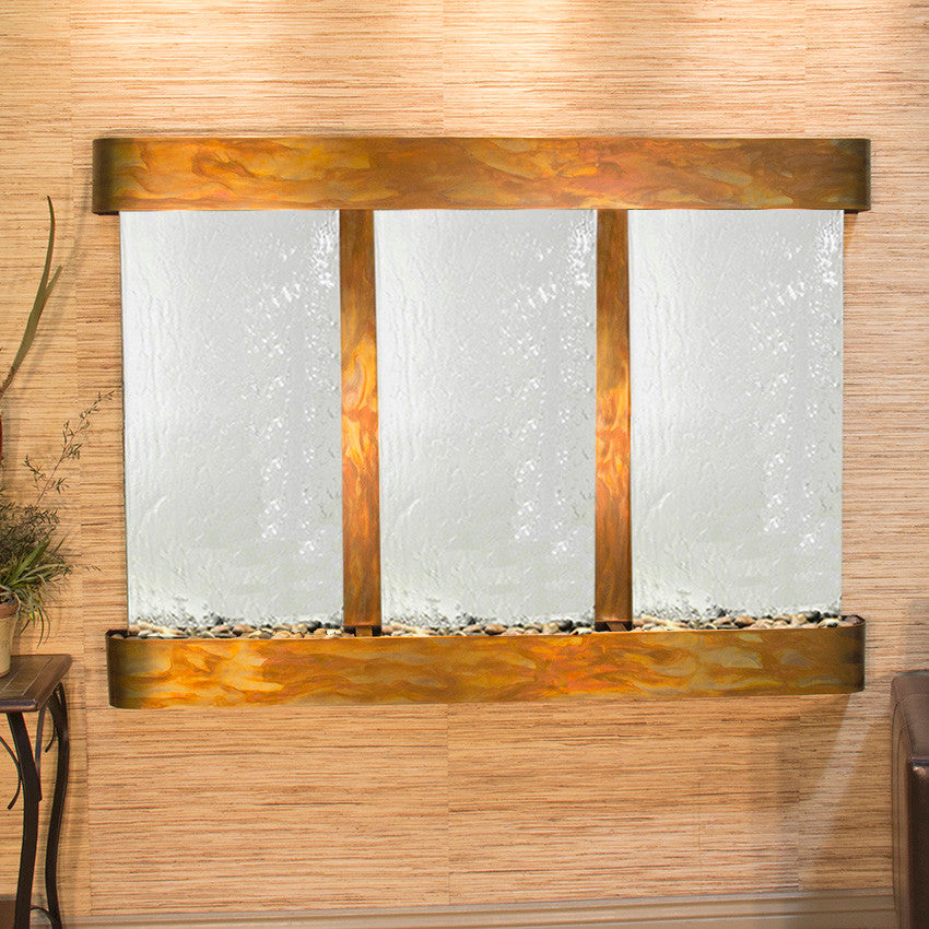 Olympus Falls Water Fountain, Silver Mirror, Rustic Copper, Round