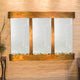 The Olympus Falls water fountain by Adagio Water Features is a beautiful three panel water wall that comes in slate, marble, mirror, or FeatherStone. This wall water fountain is self-contained allowing you to place it anywhere there is a standard 110V outlet without needing a water source. Just pour water into your tray and the pump will cycle it through. Enjoy the calming effects of a water fountain in your home today.75" L x 54" H x 6" D, easy to hang, complete with colored instructions and hardware for hanging on a sheetrock wall. Hanging Weight 240 lbs.This unit includes: 6 halogen lights Polished river rocks 3 Electric pumps3-way pull chain that allows you to run just lights, just water, or lights and water. Welded plastic liner insures against leaking and unique water distribution unit system will not clog. 110V, 100W; one cord operates entire unit; 90 degree plug can be concealed behind water feature. Durable powder coat finish; Manufactured and assembled in the USA with a 1 year limited warranty.