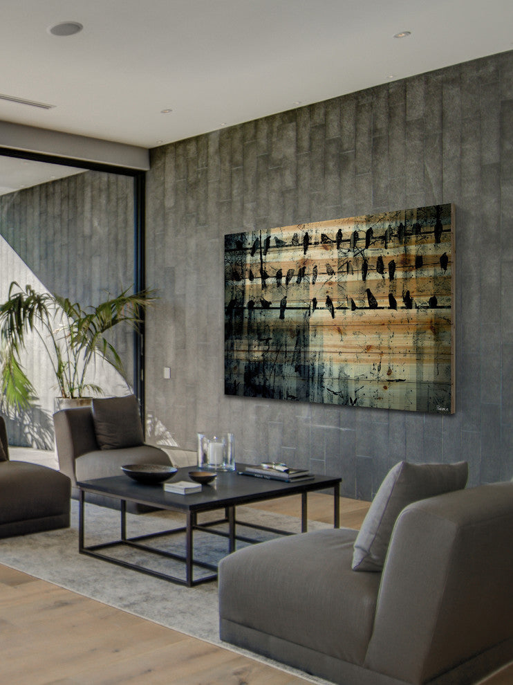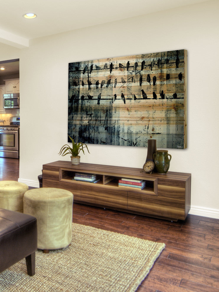 "On the Line" UV Ink Print on Natural Pine Wood, 45"x30"