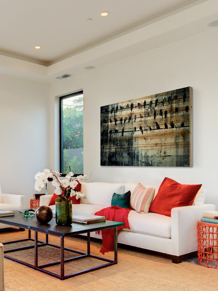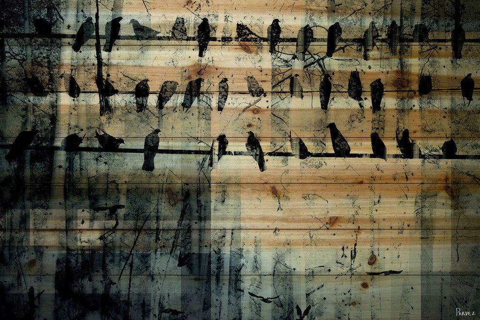 Striking and unique, the "On the Line" UV Ink Print on Natural Pine Wood by Parvez Taj will bring your walls to life. Printed on white pine wood, this 45 inch wide by 30 inch tall contemporary artwork will make a statement in any living room, dining room, or bedroom.- Fine art print on natural pine by Parvez Taj- wood pieces are hand-selected by Fine craftsmen for printing- Arrives ready to hang- Includes a certificate of authenticity- Artist signature on the front