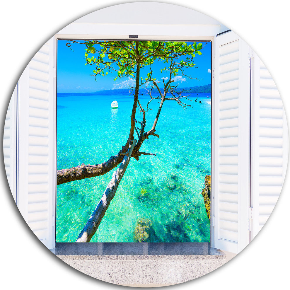 Open Window To Gorgeous Seashore, Seascape Round Metal Wall Art, 23"