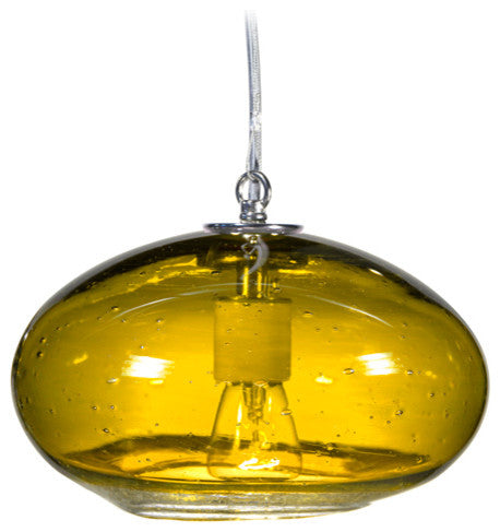 The Mini Fizz Pendant adds a pop of luminosity and color to any room. These miniature gem-like pendants are the perfect option for accent lighting, used individually or in a group. This collection is created by Tempo Luxury Home in New York. The organic process of hand-blowing makes each pendant unique. 8" W x 4.5". 5" Canopy. Edison-style filament bulb included. 60w; 120v. Ships with 6'' of electrical cord.