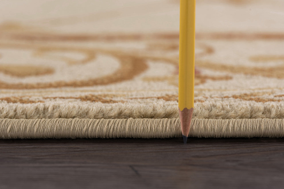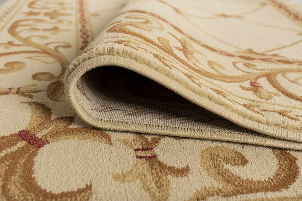 Blanket your floors in the traditional beauty of the Orleans Traditional Area Rug. This stunning rug features an intricate fleur de lis pattern with a scroll border in vibrant bone ivory, fawn beige and brass. Polypropylene fibers make this rug easy to care for and naturally stain-resistant perfect for high traffic areas, large kitchens or even under the family dining table.Care instructions: Vacuum to restore pile; spot clean with mild detergent and water when necessary; do not bleach.Color: IvoryMaterials: Power loom machine-made polypropyleneDimensions: W 5''3" x D 7''3"Please Note: Due to differences in computer monitors, some product colors may vary slightly.