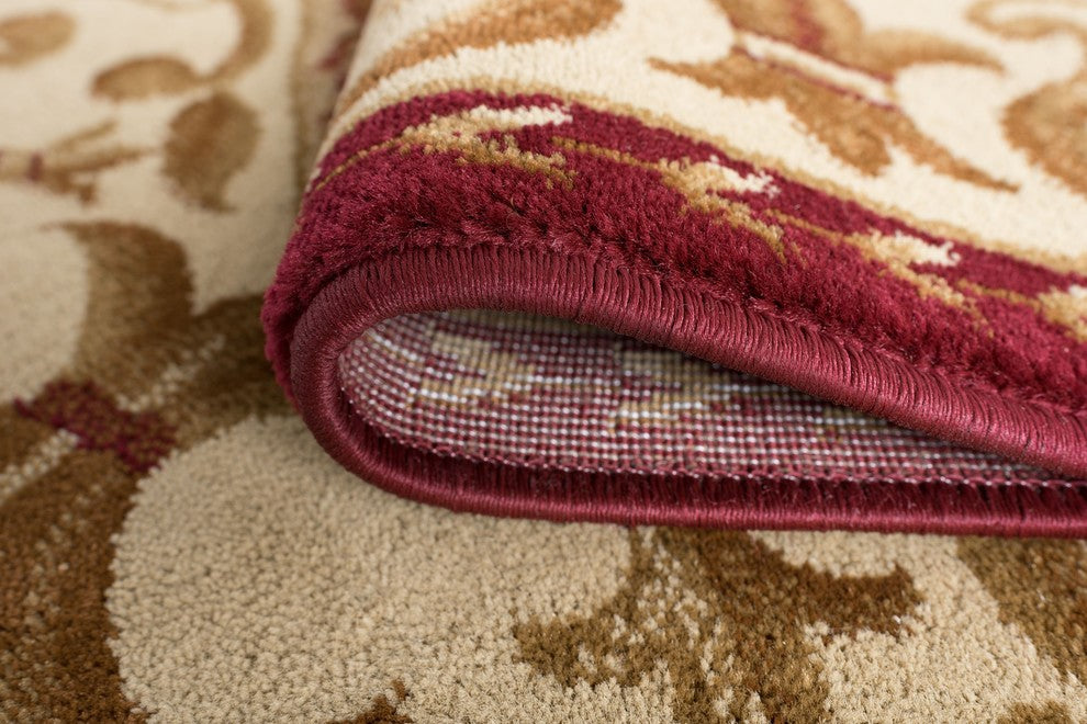 Blanket your floors in the traditional beauty of the Orleans Traditional Area Rug. This stunning rug features an intricate fleur de lis pattern with a scroll border in vibrant scarlet, fawn beige, bone ivory, and brass. Polypropylene fibers make this rug easy to care for and naturally stain-resistant, perfect for high traffic areas, large kitchens or even under the family dining table.